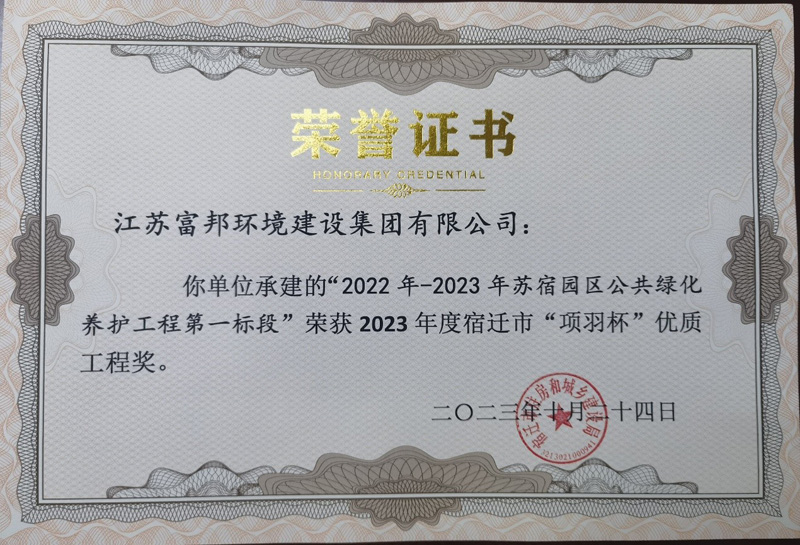 宿遷市“項(xiàng)羽杯”優(yōu)秀工程獎(jiǎng)是宿遷市園林綠化工程的最高獎(jiǎng),獲獎(jiǎng)工程的施工質(zhì)量須達(dá)到市區(qū)先進(jìn)水平,并具有較好的生態(tài)效益和社會(huì)效益,主要有規(guī)劃設(shè)計(jì)類、施工類、養(yǎng)護(hù)類三大類獎(jiǎng)項(xiàng)。