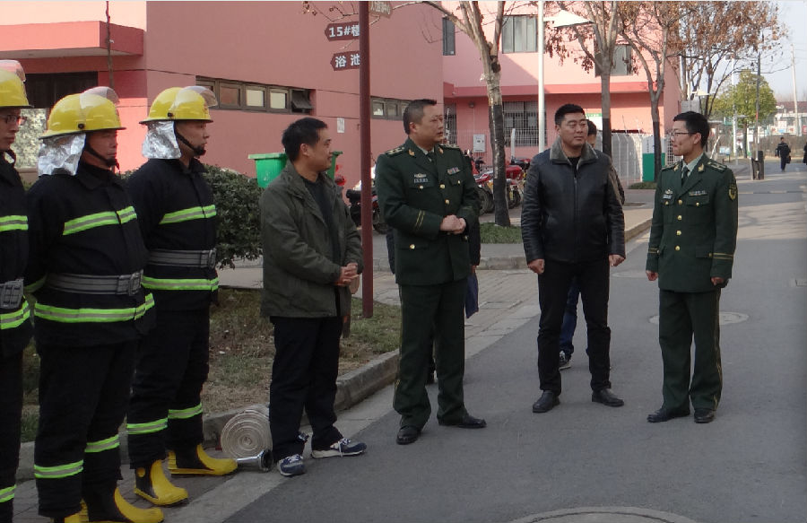 1月16日,宿遷市消防支隊防火處處長經(jīng)賢華、宿遷市宿城區(qū)消防大隊大隊長楊圣林一行人蒞臨園區(qū)公舍,對我司2016年的消防安全建設(shè)工作做年終考評。