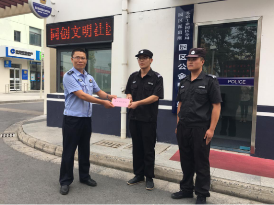 為表彰協(xié)助公安機關(guān)抓獲市局督辦系列盜竊案件嫌疑人的見義勇為行為,9月21日,蘇宿工業(yè)園區(qū)公安分局一行人來到園區(qū)公舍,根據(jù)《宿遷市見義勇為基金會獎勵撫恤辦法》和《宿遷市聯(lián)防保安人員見義勇為獎勵辦法》相關(guān)規(guī)定,研究決定對7月23日晚成功擒獲“園區(qū)公舍系列盜竊案”嫌疑人的兩名園區(qū)公舍保安張可、鞠銀龍進(jìn)行獎勵。