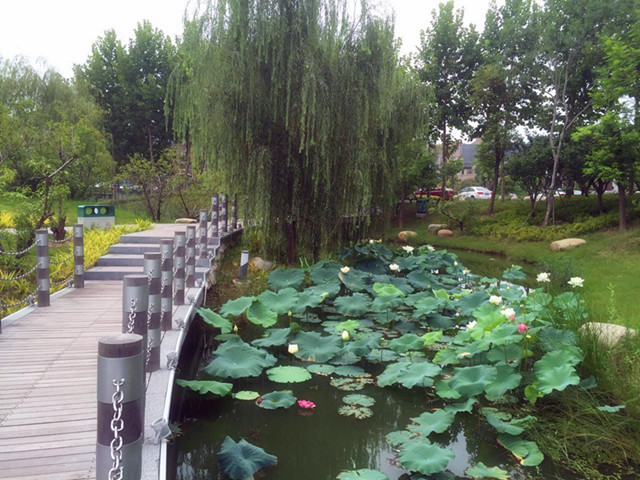 公園內(nèi)水面栽植荷花、睡蓮面積約1.2萬平方米,荷花花期在6月至9月間,睡蓮花期在6月至8月, 78月均為盛放期。