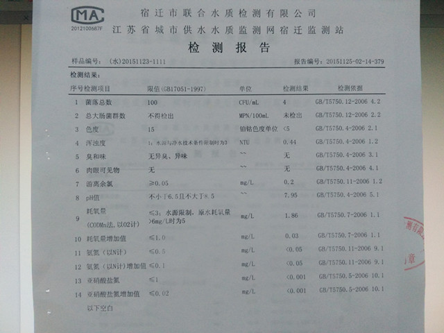11月23日下午,建發(fā)公司組織宿遷市聯(lián)合市政工程有限公司開展三期生活水箱下半年清洗工作。截止25日,水箱清洗、消毒,水質(zhì)檢測(cè)已全面完成。
